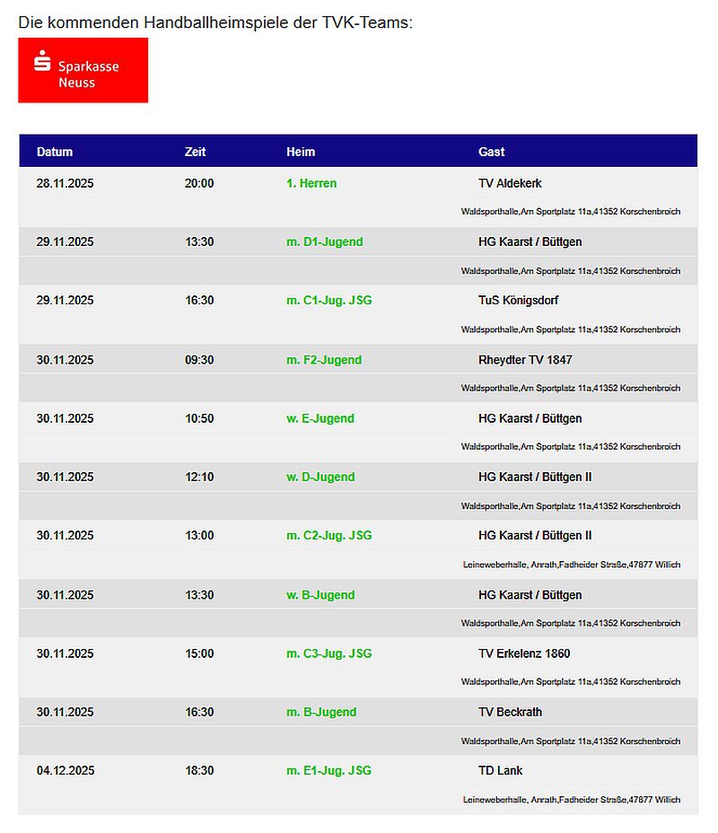 Von den 20 Korschenbrocher Mannschaften tragen am Wochenende 11 Teams ihre Spiele zu Hause aus.