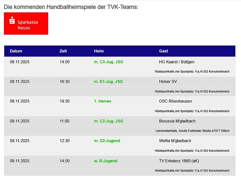 Von den 20 Korschenbrocher Mannschaften tragen am Wochenende 6 Teams ihre Spiele zu Hause aus.