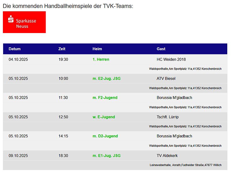 Von den 20 Korschenbrocher Mannschaften tragen am Wochenende 6 Teams ihre Spiele zu Hause aus.
