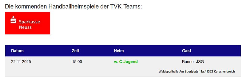 Bedingt durch den Totensonntag am 23. November, an dem bis 18:00 keine Sportveranstaltungen durchgeführt werden dürfen, hat der Handballverband Nordrhein bzw. der Handballkreis Mönchengladbach nur wenige Spielpaarungen angesetzt.