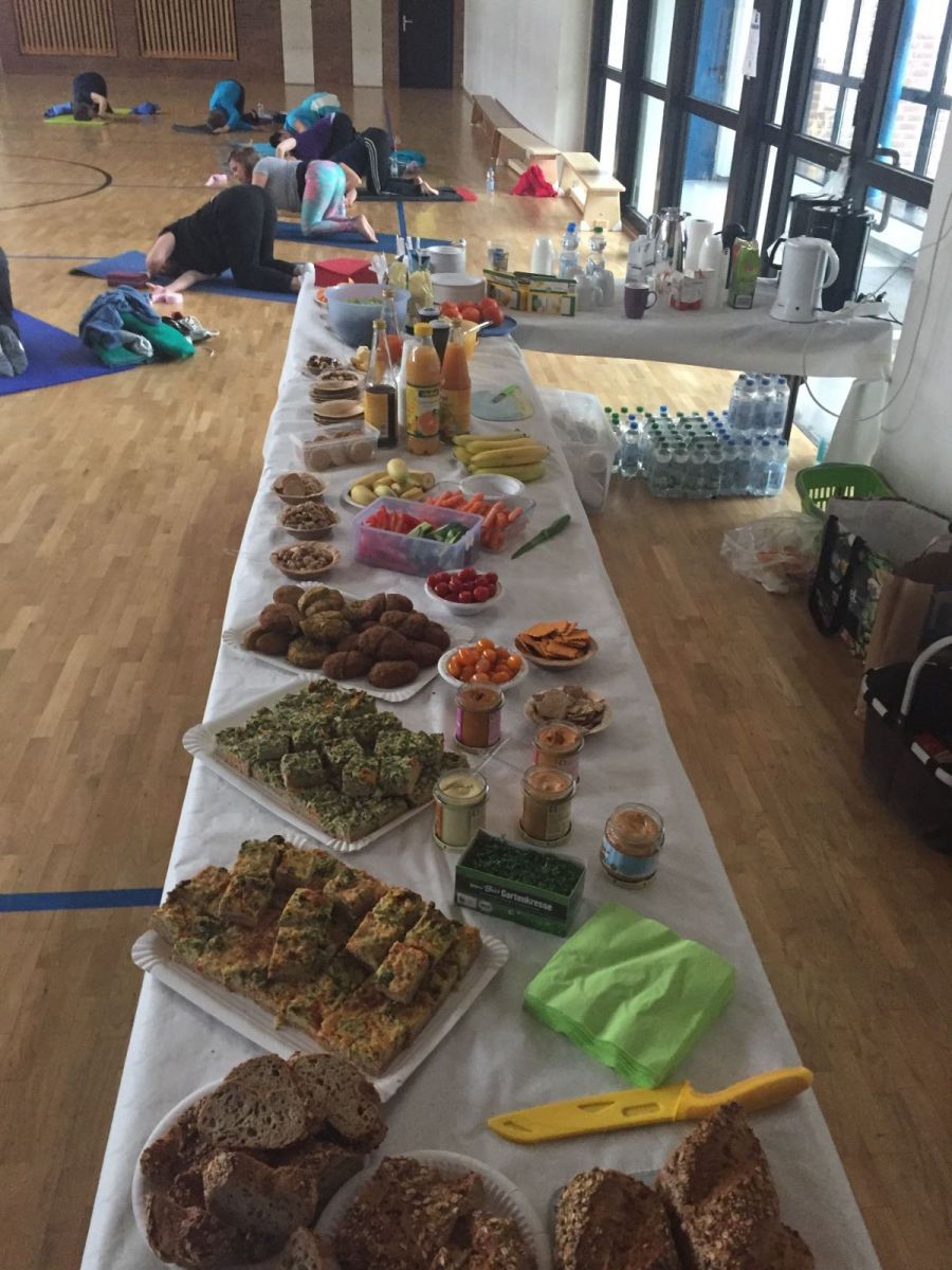 Der SuperBIOmarkt versorgte alle mit gesunden Snacks wie Bratlingen, Quiche, Falafel, Joghurt, Säften und Keksen, damit auch nach der Mittagspause wieder voll durchgestartet werden konnte.