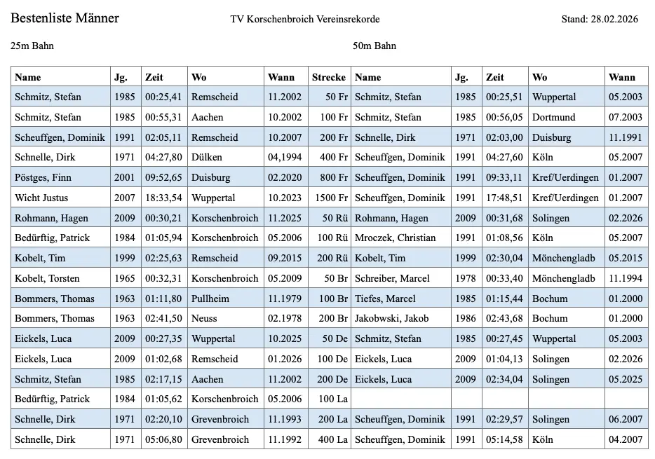 Vereinsrekorde Männer Stand Oktober 2025