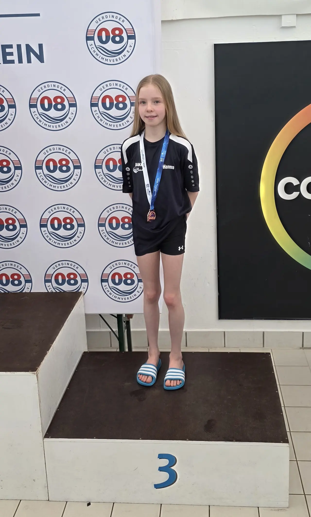 Hanna Baas (Jg. 2015) konnte sich den 3. Platz über 400m Lagen sichern. Bei ihr blieb die Uhr bei 7:11,25 stehen.