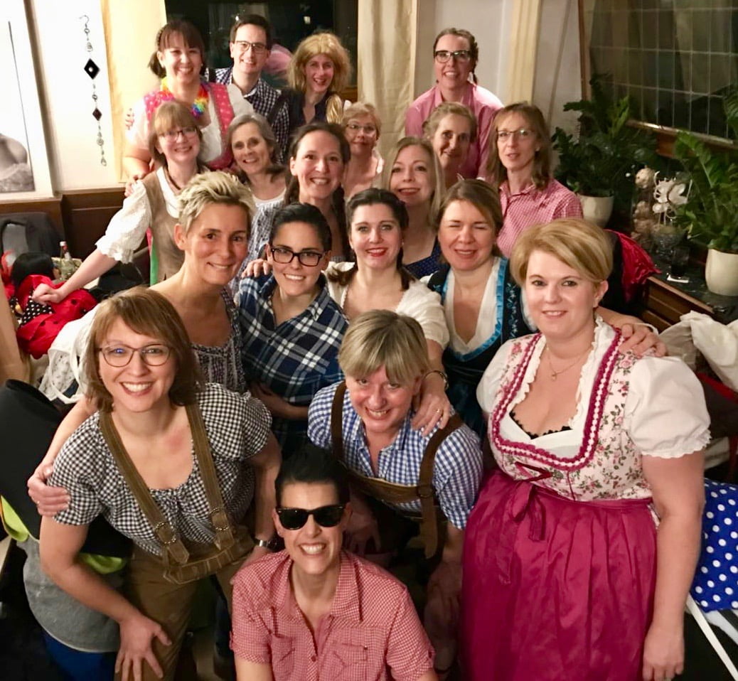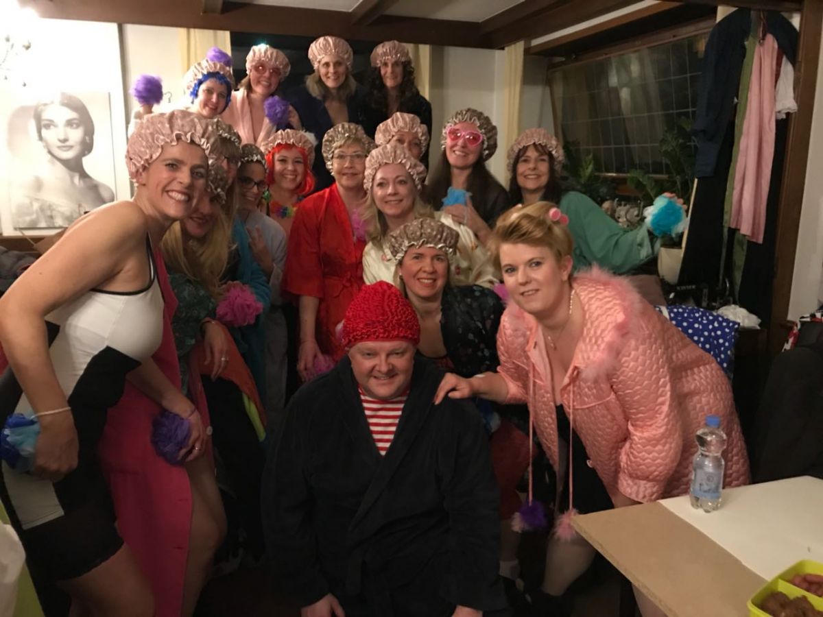 Auch dieses Jahr hatten sich 23 Karnevalisten aus den verschiedensten Breitensportkursen zusammen gefunden, um für die vier Gastauftritte bei der Kfd St. Andreas zu proben. Es sollte nicht nur eine volle Wanne geben, auch Andreas Gabalier und Patrick Swayze sollten ihren Weg auf die Korschenbroicher Bühne finden. Denen sah Carmen Zimmermann nach Aussagen des Publikums bei ihrer Performance so zum Verwechseln ähnlich, dass sie locker als Mann durchgegangen wäre. “Ob das ein Kompliment ist weiß ich nicht”, lacht Carmen, “trotzdem hilft es mir immer, wenn ich mit den Verkleidungen in die Rollen schlüpfe und das Gefühl habe, mich erkennt keiner.”
